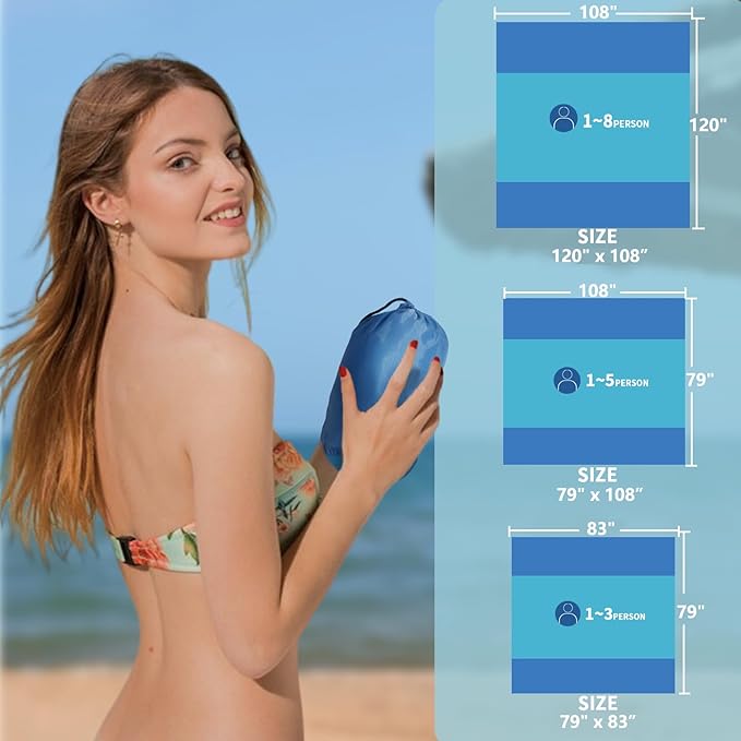 - ✅ Extra-large Size: With an unfolded dimension of 79”x108”, it can comfortably accommodate 1-4 people. Whether it’s a family picnic, sunbathing with friends, or playing games, there’s plenty of space for everyone to stretch out and bid farewell to cramped situations!