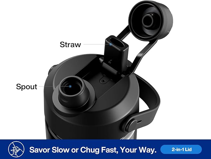 - Versatile 2-in-1 Lid: Features a straw for easy sipping and a spout for effortless pouring or chugging; simplifying beverage access whether it's a hot coffee or a cold drink