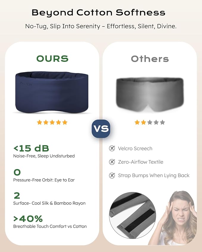 - Adjust in Silence, Dream Without Disturbance! Engineered with Tear-Free Silent-Adjust Straps – no velcro rips, no buckle clicks! Glide the straps seamlessly for a custom fit (fits all head sizes 20-28in). Perfect for light sleepers, co-sleeping couples, or frequent flyers. Finally, zero noise adjustments in pitch darkness
