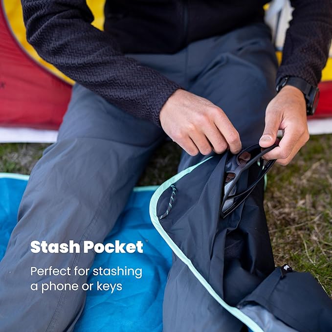 - Waterproof, portable ground mat with a soft microsuede top and rugged bottom for camping, hiking, beach days, picnics, concerts, and festivals