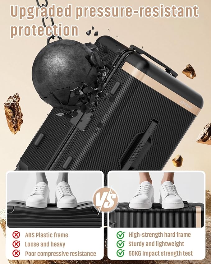 - Ultra-Lightweight & Pressure-Resistant Luggage: Weighing just 8.3 lbs, this carry on suitcase is lighter than most, yet features a reinforced frame that withstands 50KG impact tests for superior durability.