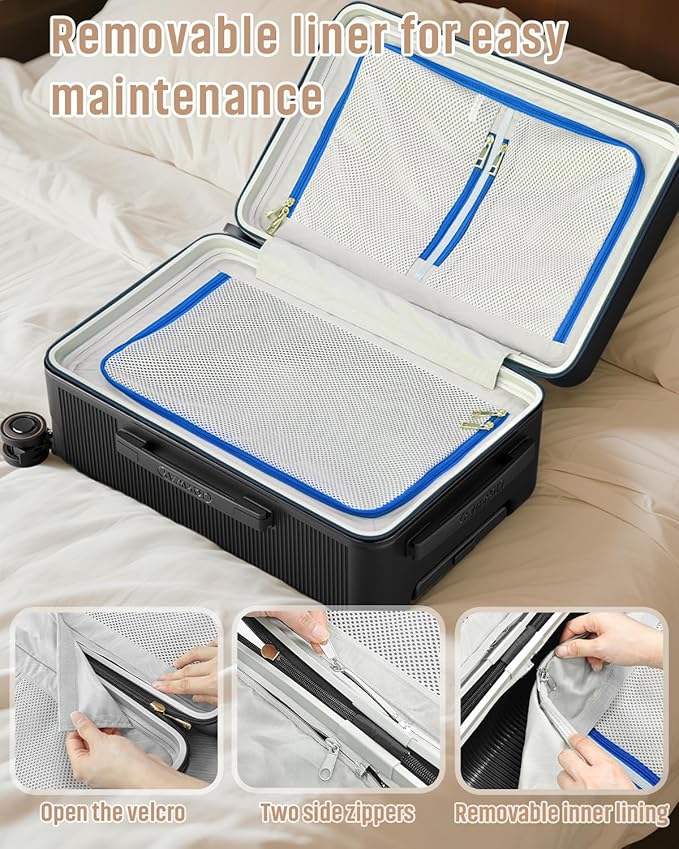 - Removable & Organized Interior: This trunk suitcase features a detachable liner for easy cleaning and multiple compartments to keep belongings neatly arranged.