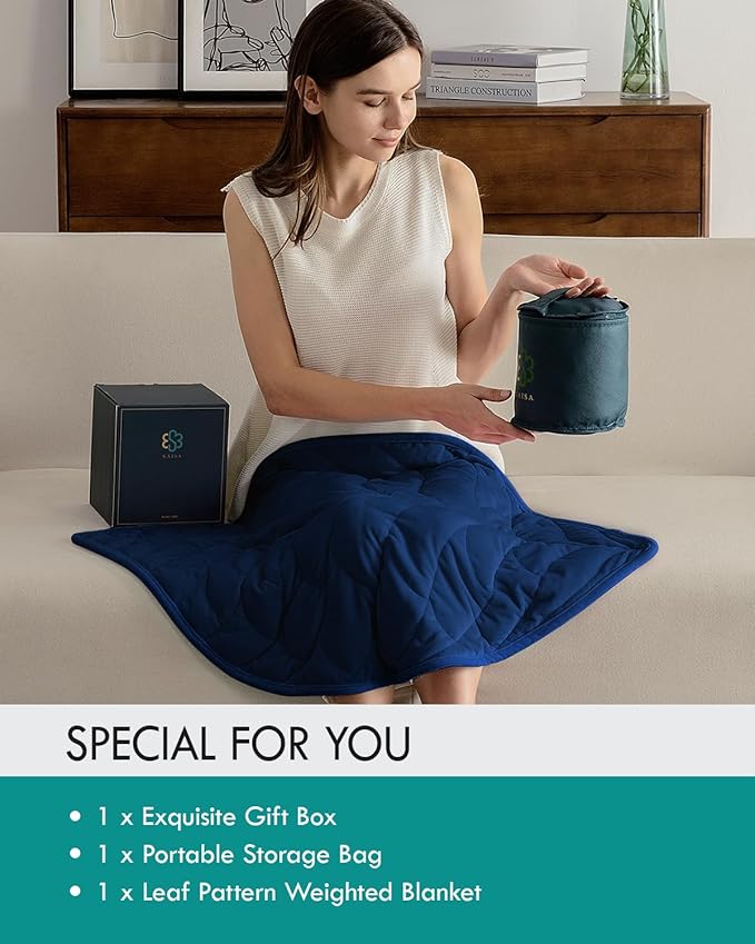 Kaisa Weighted Blanket for Adults(5 lbs, 23" x 29"), Soft Weighted Lap Blanket Machine Washable, Small Heavy Blankets with Glass Beads for Travel & Sleep,Navy Blue