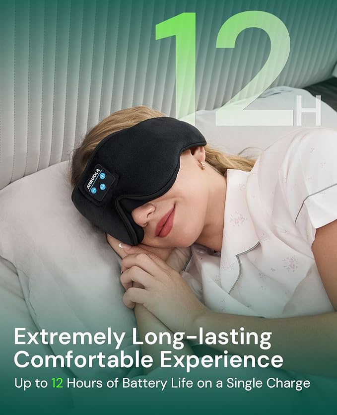 - 【Bluetooth 5.4 Technology, Fast Pairing and High Efficiency】Equipped with advanced Bluetooth 5.4 technology, Bluetooth sleep eye mask achieves extremely fast pairing and stable connection, and can minimize battery consumption, allowing you to enjoy clear music all night.Compatible with all Bluetooth-enabled devices, with a connection range of up to 40 feet, ensuring that you can enjoy music even if you are away from the device.