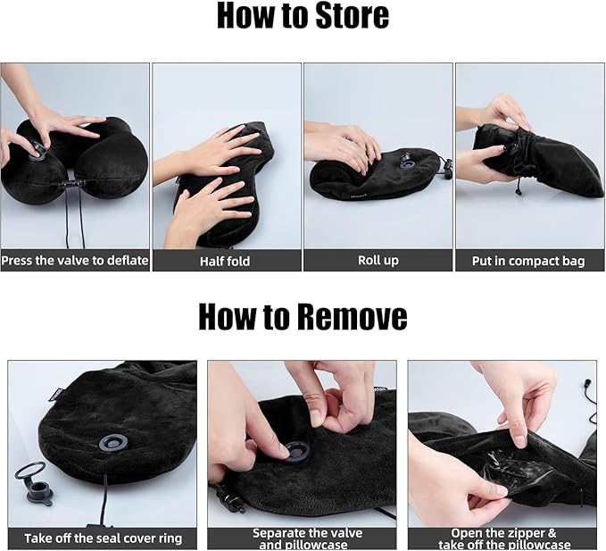- Adjustable Firmness: inflatable neck pillow with a valve, no need air pump, valve is easy to open/close, adjust the neck firmness and support level by increasing/decreasing air. Easily pressing the spring button in the air valve to fast deflate