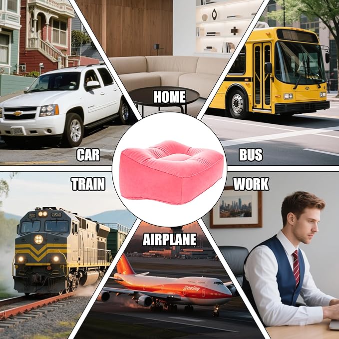 Inflatable Foot Rest Pillow - Portable, Non-Slip Base for Desk, Office Chair, Travel & Bed - Ergonomic Foot Support & Comfort(Pink)