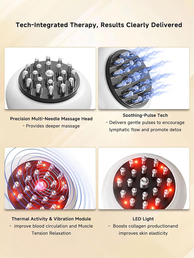 - Lymphatic Drainage & Detox Massage – Reduce Swelling & Water Retention: This lymphatic drainage massager uses multi-needle precision massage and Bioelectric SoothingPulse to deeply boost lymphatic flow, helping reduce swelling, water retention, and bloating. The enhanced detox process promotes better circulation, leaving your body feeling lighter, sculpted, and energized.