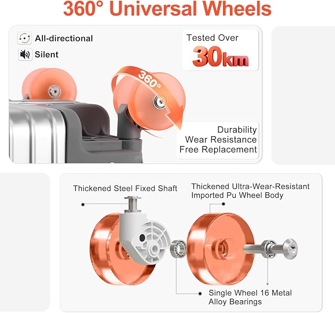 - Skate-Grade PU Wheels:Features smooth, silent, and effortlessly maneuverable 360° PU spinner wheels, inspired by roller skate technology