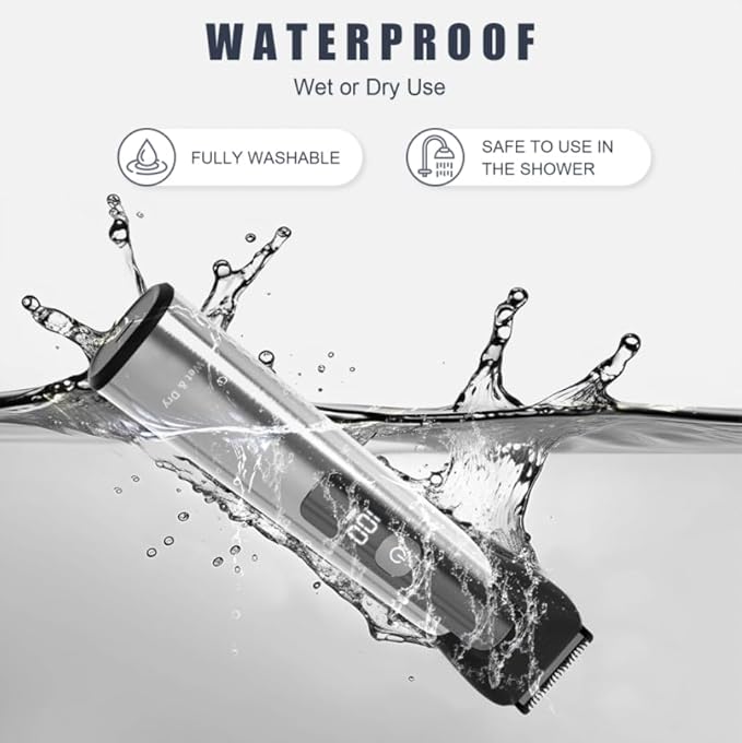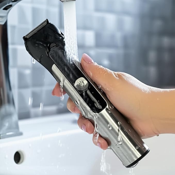 - 【𝗦𝘁𝗮𝗶𝗻𝗹𝗲𝘀𝘀 𝗦𝘁𝗲𝗲𝗹 𝗗𝗲𝘀𝗶𝗴𝗻 & 𝗜𝗣𝗫𝟳 𝗪𝗮𝘁𝗲𝗿𝗽𝗿𝗼𝗼𝗳】Enjoy superior control with the premium stainless steel frame and comfortable, non-slip grips. With IPX7 waterproof rating, this trimmer is safe for use in the shower or at the sink and makes cleaning quick and easy