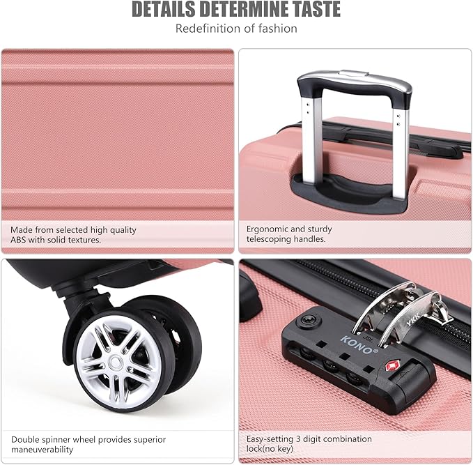 - Come with 2-YEAR LIMITED WARRANTY: KONO’s Classic luggage is designed with a durable, water repellent, and lightweight ABS hardshell. Each Kono luggage undergoes extremely strict quality control test standards to ensure that our products can endure the harsh conditions of modern transportation.