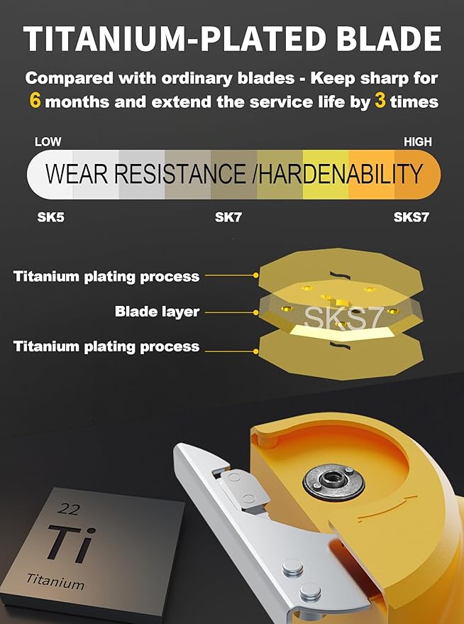 - UNMATCHED CUTTING PERFORMANCE: The 4V electric cardboard cutter are equipped with a premium titanium alloy blade, 3x more wear-resistant than standard blades, ensuring long-lasting performance without frequent sharpening. Cardboard cutter with high-speed 300RPM motor, cutting power is boosted by 20% for a smoother and more efficient experience. Whether you’re opening boxes or crafting, enjoy professional-grade cutting with ease