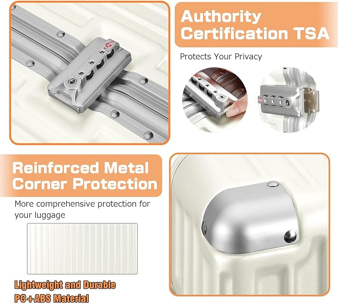 - 【4 Metal Corner Guards】The four corners of the luggage have 100% aluminium corner guards to further protect your luggage, even if the luggage is subjected to strong impacts, he can provide further protection and increase the usage time of the case.