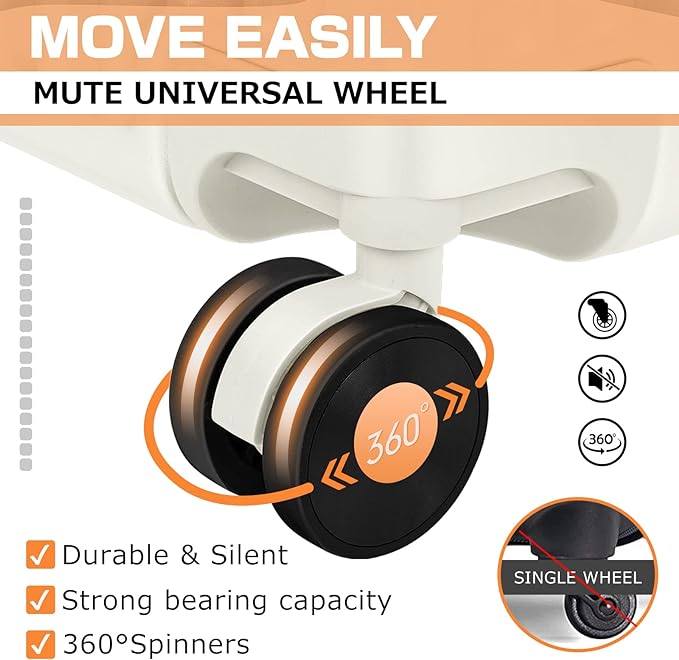 - 【360°Spinner Wheels】 The 4 multi-directional swivel wheels distribute the weight of your luggage evenly, ensuring an easy glide through a busy airport or train station, quietly and smoothly. The double wheel design is more durable.