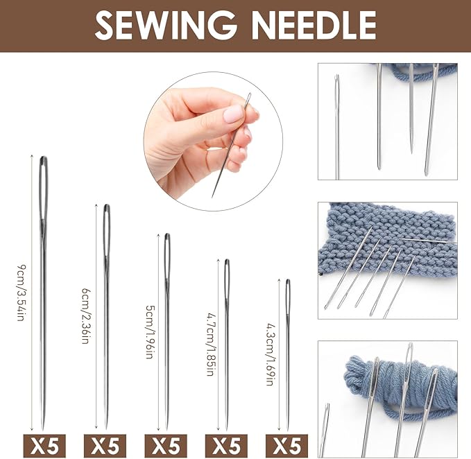 - Versatile: This product includes 25 needles, a storage tube, two thimbles, two needle threaders, a seam ripper, and six threads, making it an essential tool for mending, sewing, and crafting anytime, anywhere.