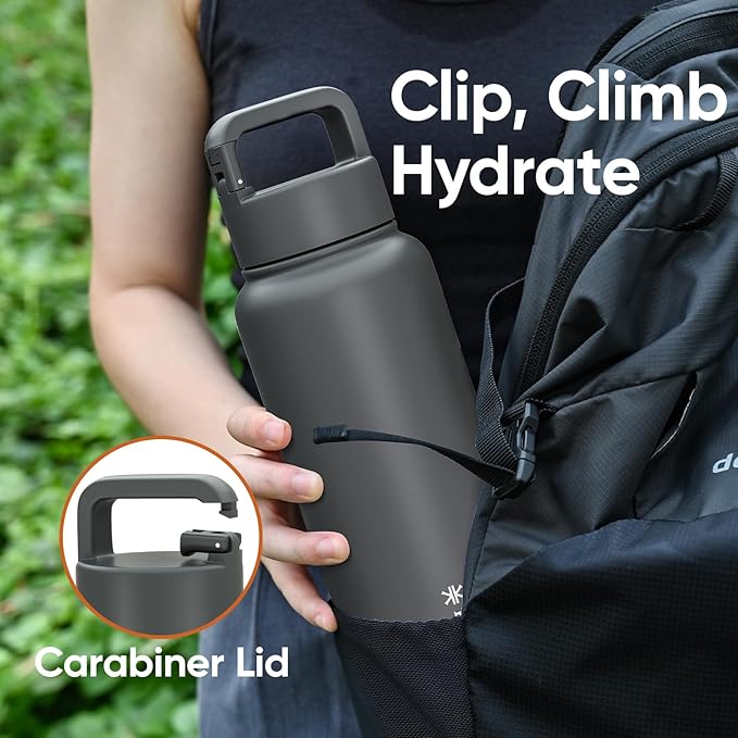 - [Clip-It Carabiner Lid]: Clip it securely to backpacks, gym bags, or belt loops—no more fumbling with loose bottles during outdoor activities. Insulated water bottle sturdy and reliable, it offers essential hands-free convenience for adventures.