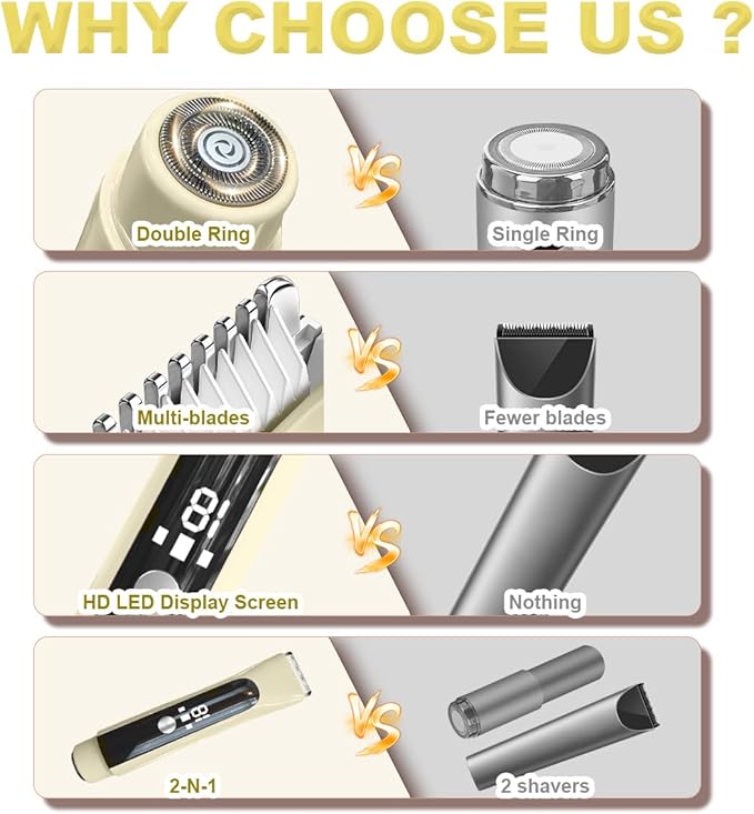 - Painless & Hypoallergenic for Sensitive Skin:This bikini razor features a strong, stable motor and skin-friendly ceramic blades that ensure smooth, gentle trimming—perfect for sensitive skin. It enables stress-free trimming on intimate areas while effectively preventing scratches or cuts, so you can enjoy a comfortable grooming experience.