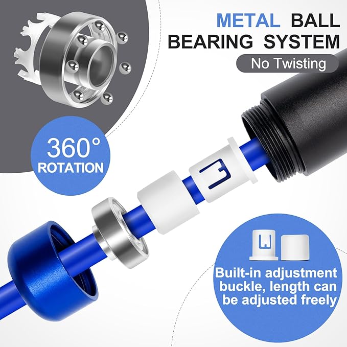 - Stable and Durable: The weighted jump rope with a Built-in metal ball bearing system ensures 360° smooth rotation with no winding or knotting, allowing you to focus on your workout without disruptions, helping you get a better workout with the same effort and achieve your fitness goals faster