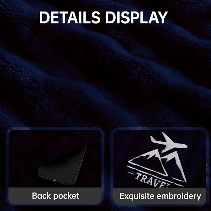 Travel Blanket and Pillow-2-in-1, Ultra-Soft&Compact, One-Piece Airplane Blanket with Hand Luggage Belt and Backpack Clip,Travelers Accessories Gifts, 61x43 Inches(Navy)