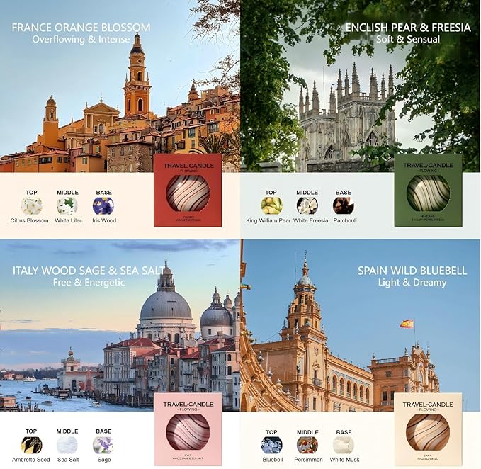- LUXURY SET: Complete collection of 4 premium scented candles featuring distinct fragrances inspired by European destinations - Italy, France, Spain, and England