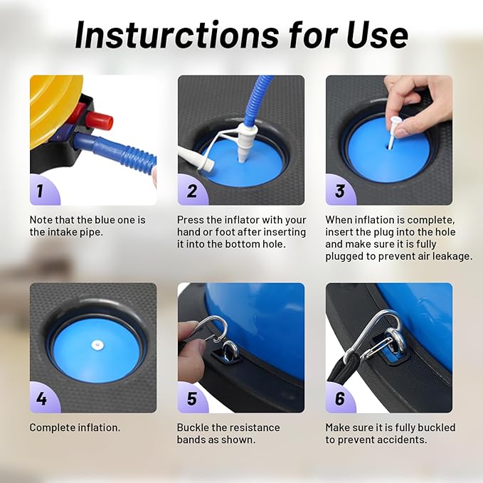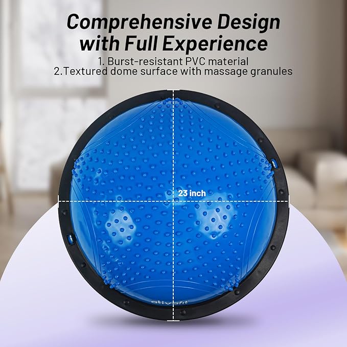 - Burst-Resistant & Durability: Crafted from heavy-duty, burst-resistant PVC material, our half exercise ball is built to last. It's designed to handle intense workouts and daily use with a slow-deflation safety feature, ensuring your peace of mind during every squat, crunch, or stretch.