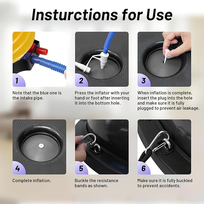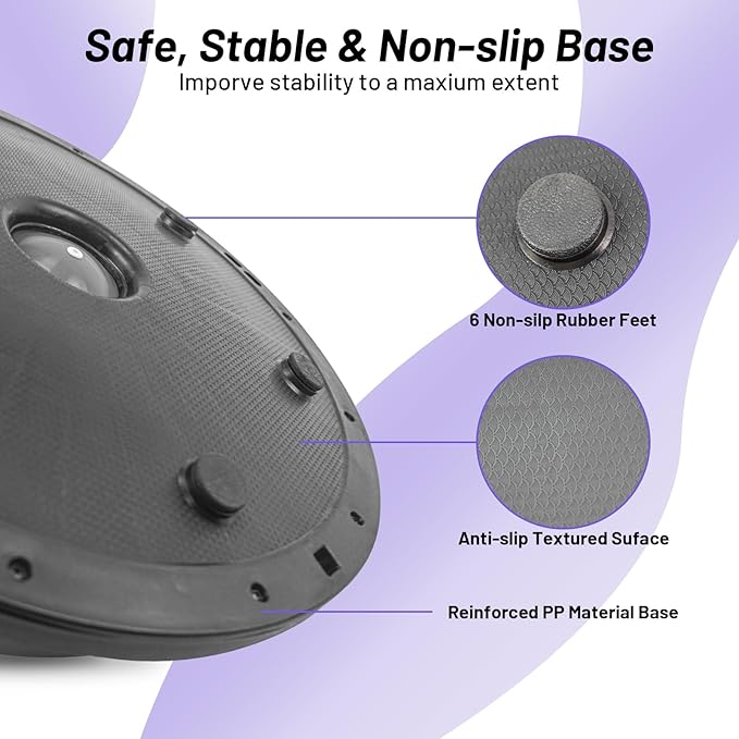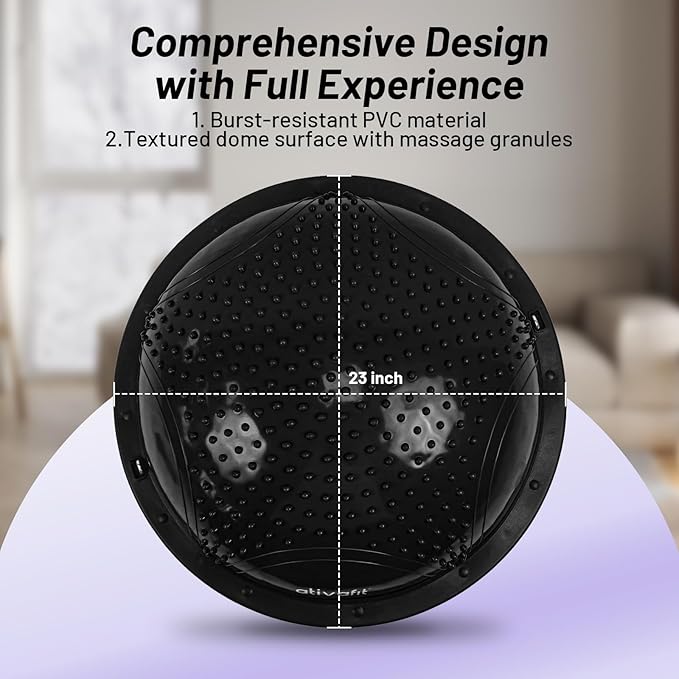 - Burst-Resistant & Durability: Crafted from heavy-duty, burst-resistant PVC material, our half exercise ball is built to last. It's designed to handle intense workouts and daily use with a slow-deflation safety feature, ensuring your peace of mind during every squat, crunch, or stretch.