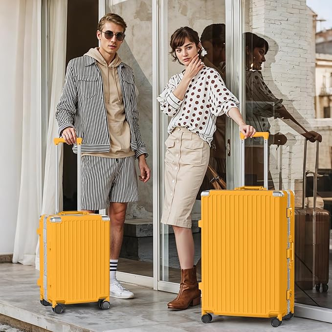 AnyZip Luggage Sets 2 Piece Aluminum Frame Carry On and Checked Suitcase PC ABS Hard Shell TSA Lock No Zipper(Orange, 20/28)