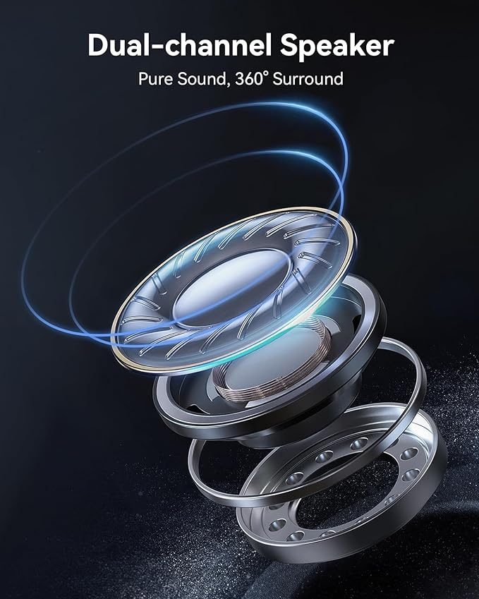- 360° Surround Sound, Dual-Channel Design: This 4K support projector adopts an independent speaker stand design and features a unique audio-visual separation design, which not only delivers cinema-grade sound but also enhances product durability. With built-in 2*5W high-fidelity speakers, it provides a rich, immersive sound experience with deep bass and crisp highs, transforming every movie night into an auditory delight. The 360° flexible mount and soft diffuse reflection technology offer more viewing angle choices and reduce eye strain for more comfortable viewing.
