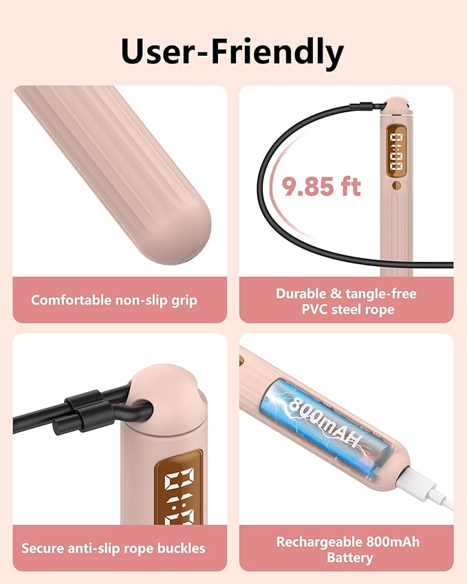 - Ideal for Beginners: Get started with jumping rope effortlessly! The ropeless mode eliminates tangling and tripping hazards, making it perfect for those new to skipping. Focus on mastering your rhythm for a smoother, more consistent workout experience right from your first jump.