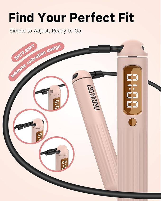 - Intelligent APP Connectivity & Tracking: Seamlessly connect your KINTHEA smart jump rope to our intuitive mobile app. Gain intelligent control and automatically track your workout progress, including jump count, workout duration, and estimated calorie burn. Monitor your performance and plan your fitness journey with insightful data at your fingertips.