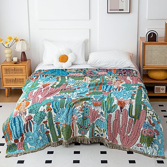- MULTI-PURPOSE: This multi-purpose blanket is perfect for use as a bed blanket, bedspread or lightweight comforter to keep you warm in the office or while traveling, it can also be used to decorate your room as a cover blanket for your sofa or chairs, and these different colors and print elements will bring bohemian and rustic style to your space.