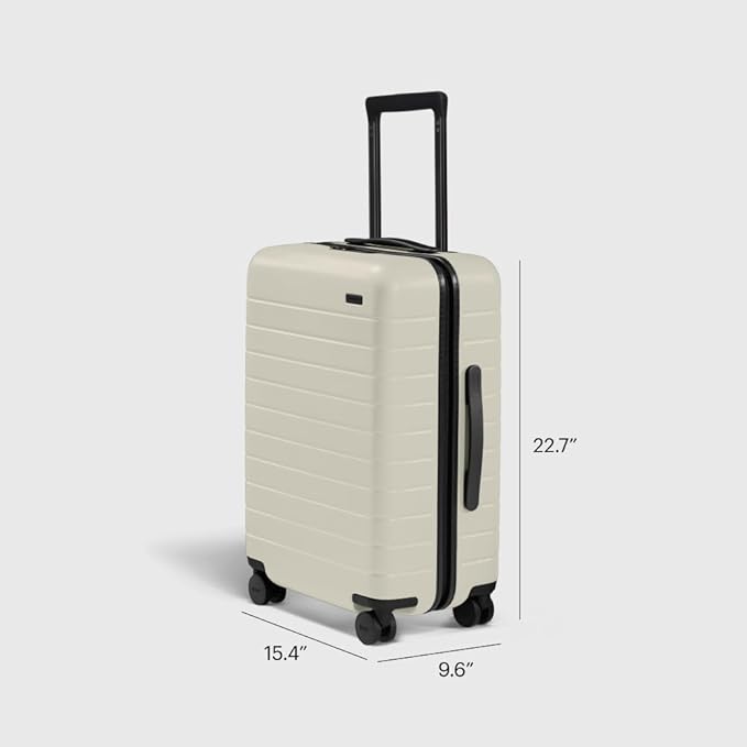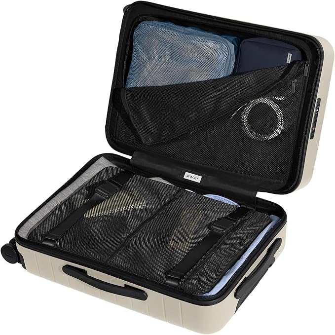 - Lightweight and durable design: Away’s Classic luggage is designed with a durable, water repellent, and lightweight 100% polycarbonate shell. Measuring 15.4"L x 9.6"W x 22.7"H, This carry-on provides ample and secured storage.