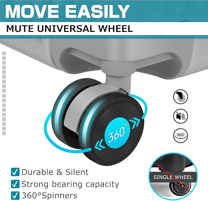 - 【360°Spinner Wheels】 The 4 multi-directional swivel wheels distribute the weight of your luggage evenly, ensuring an easy glide through a busy airport or train station, quietly and smoothly. The double wheel design is more durable.