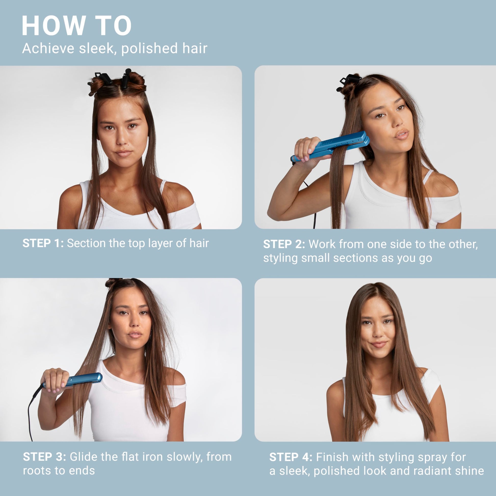 Details: This compact ultra-thin flat iron offers full power in a compact size that is perfect for travel as it is also dual voltage. The unit offers 3 LED temperature settings - 320, 360, and 400 and includes a worry-free automatic shutoff after 60 minutes of nonuse. The iron incorporates nano titanium technology for maximum smoothness and shine. It includes a locking switch which keeps the iron closed for convenient storage as well as a velcro strap-tie for cord storage.