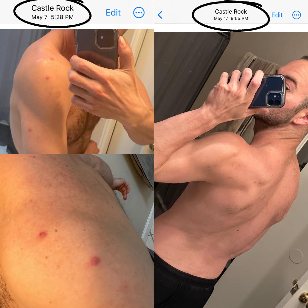 - Tea Tree Oil Therapy: Tea tree oil's natural antibacterial properties fight acne-causing bacteria, reducing breakouts and preventing future flare-ups while providing a refreshing, invigorating scent. This is the component that makes sure your body acne doesn't return so if you are prone to back acne be sure to use this even once the acne has cleared.