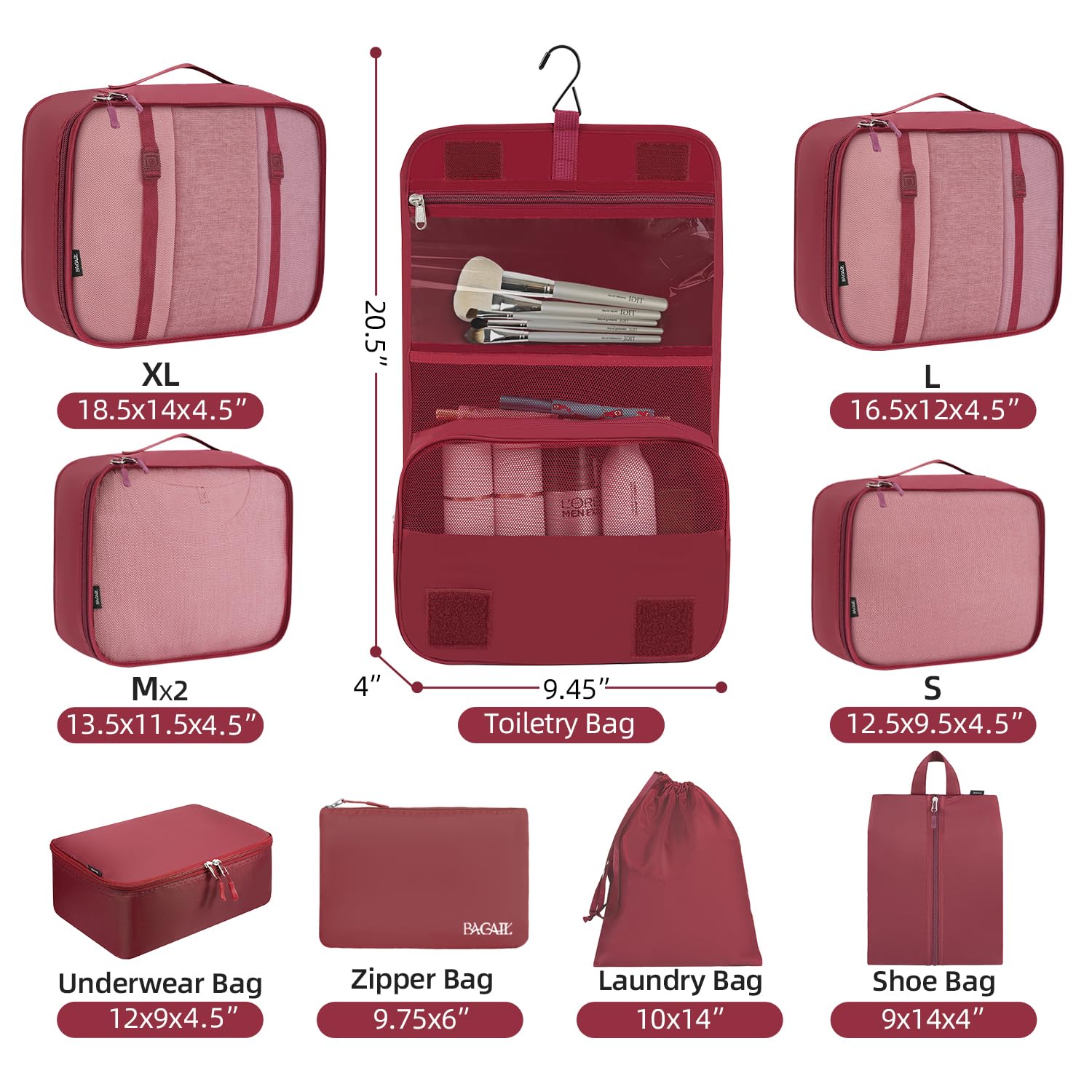 BAGAIL 10 Set Packing Cubes Various Sizes Packing Organizer for Travel Accessories Luggage Carry On Suitcase-Burgundy