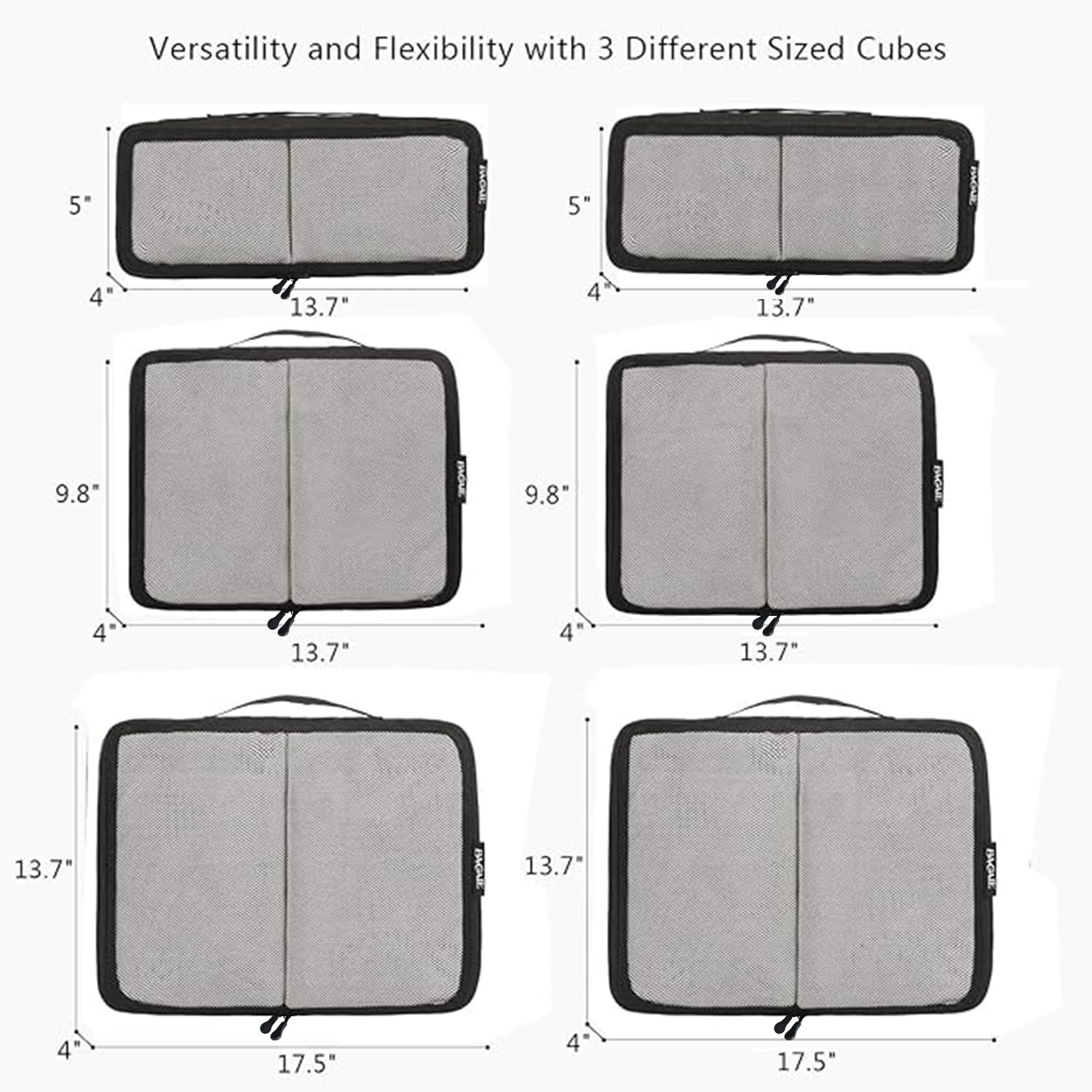BAGAIL 6 Set Packing Cubes,Travel Luggage Packing Organizers(6Set Black Net)