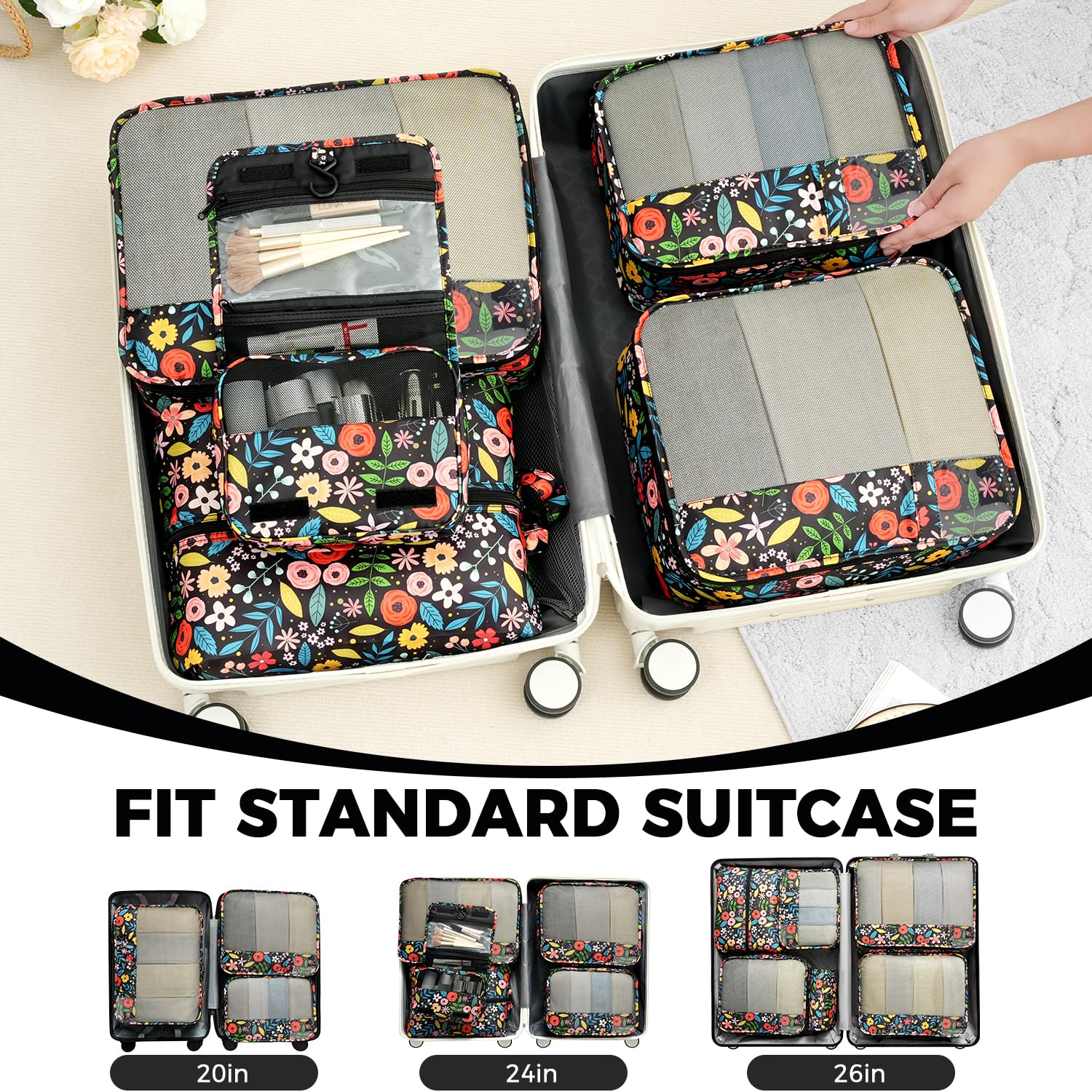 - Versatile and Multi Functional: Fit into different sizes of suitcase; Small size bag in the set can also fit airline carry-on bags, tote, weekender, backpack, duffel bag; Suitable for family breaks, business travel, vacation, hiking, camping, trip, etc
