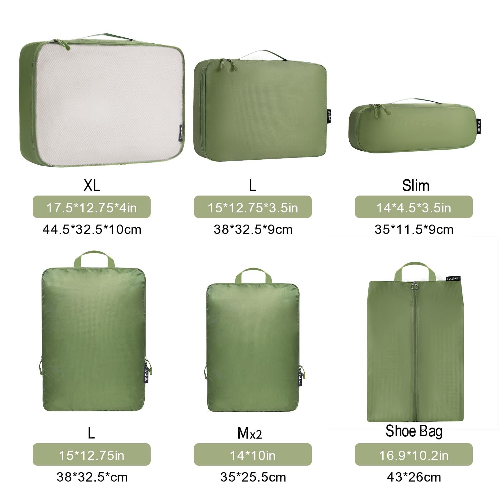 Bagail Ultralight Packing Cubes 7 Set, 3 Compression Packing Cubes 3 Packing Organizers With 1 Shoe Bag-Matcha
