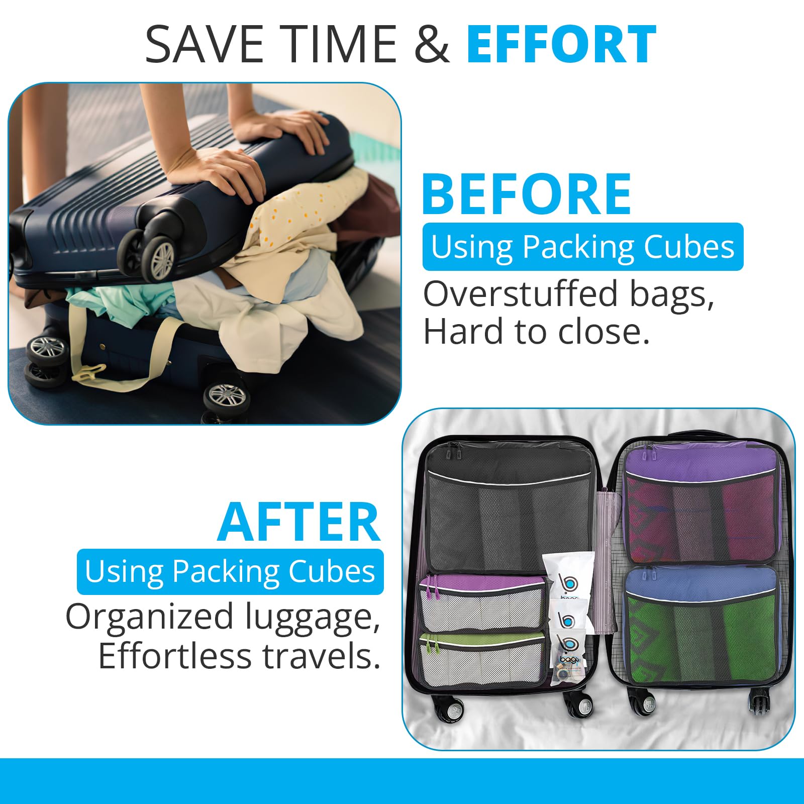 - RELIABLE CLOTHING PROTECTION: Who wants to arrive at their destination with their clothes messed up! Our packing cube suitcase organizer bags set helps to keep your garments free from wrinkles & stains, ensuring you always look the best wearing them
