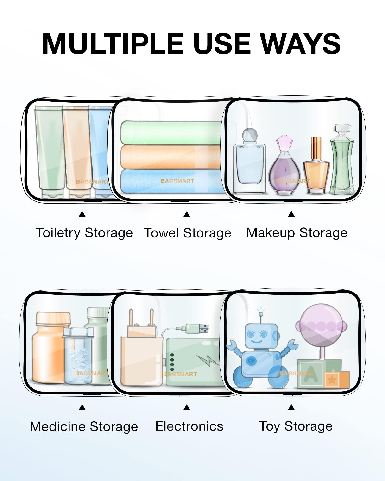 - Transparent for Easy Access: The clear travel bag with a large top opening allows for easy access to what you need; The three pack is perfect for accommodating different storage needs; It is suitable for travel bottles, as well as for storing cosmetics, toiletries, toys, and small items