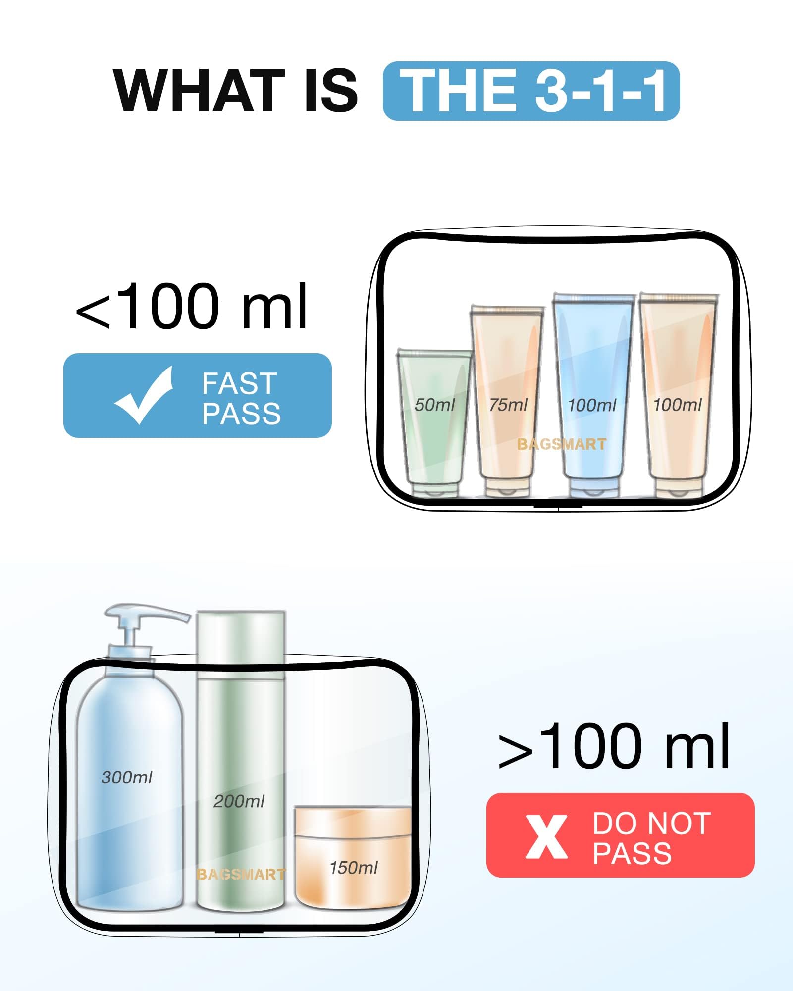 - Carry-on Size: The 8.2 x 2 x 6 inch travel toiletries bags three pack strictly follows the TSA 3-1-1 liquids rule; With a TSA quart size travel bag, you can easily and quickly pass through security screening at the airport, saving time and reducing stress