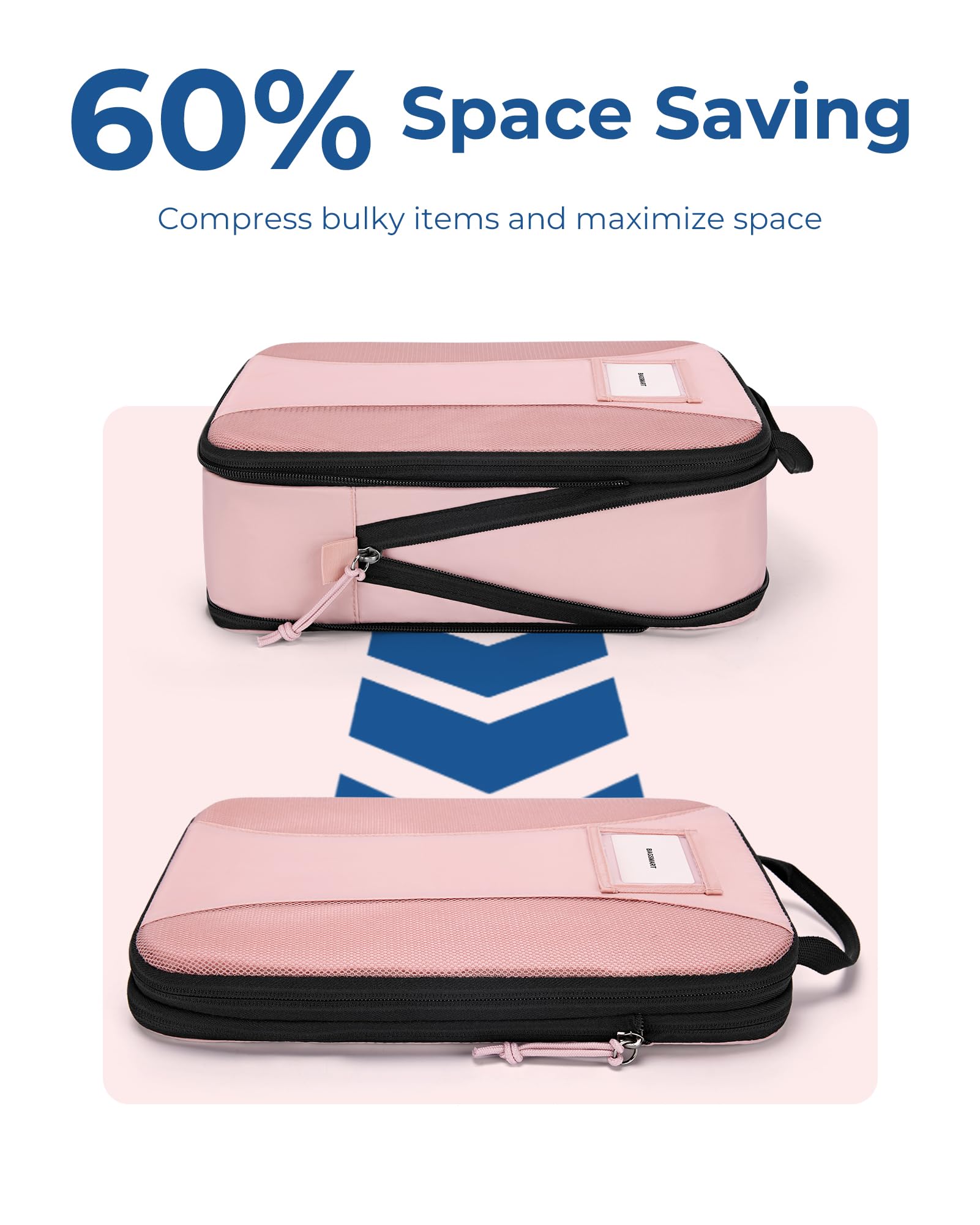 BAGSMART Compression Packing Cubes, 6 PCS Packing Cubes for Suitcases, Travel Bags Organizer for Luggage, Lightweight Packing Cube for Travel Essentials, Pink