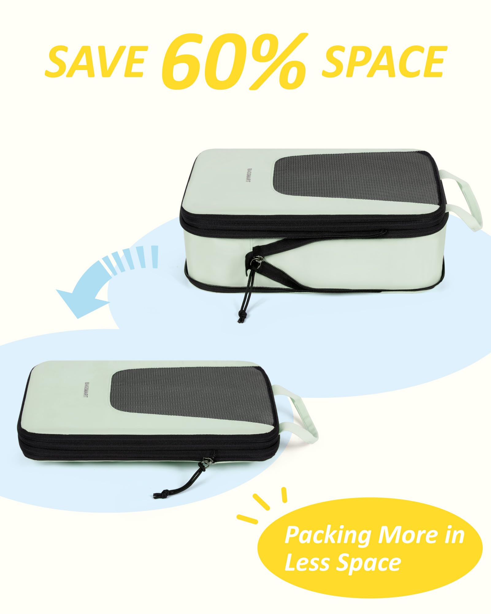BAGSMART Compression Packing Cubes for Travel, 6 Set Packing Cubes for Suitcases, Lightweight Luggage Organizer Set Cubes for Business Travel Essentials, Light Green