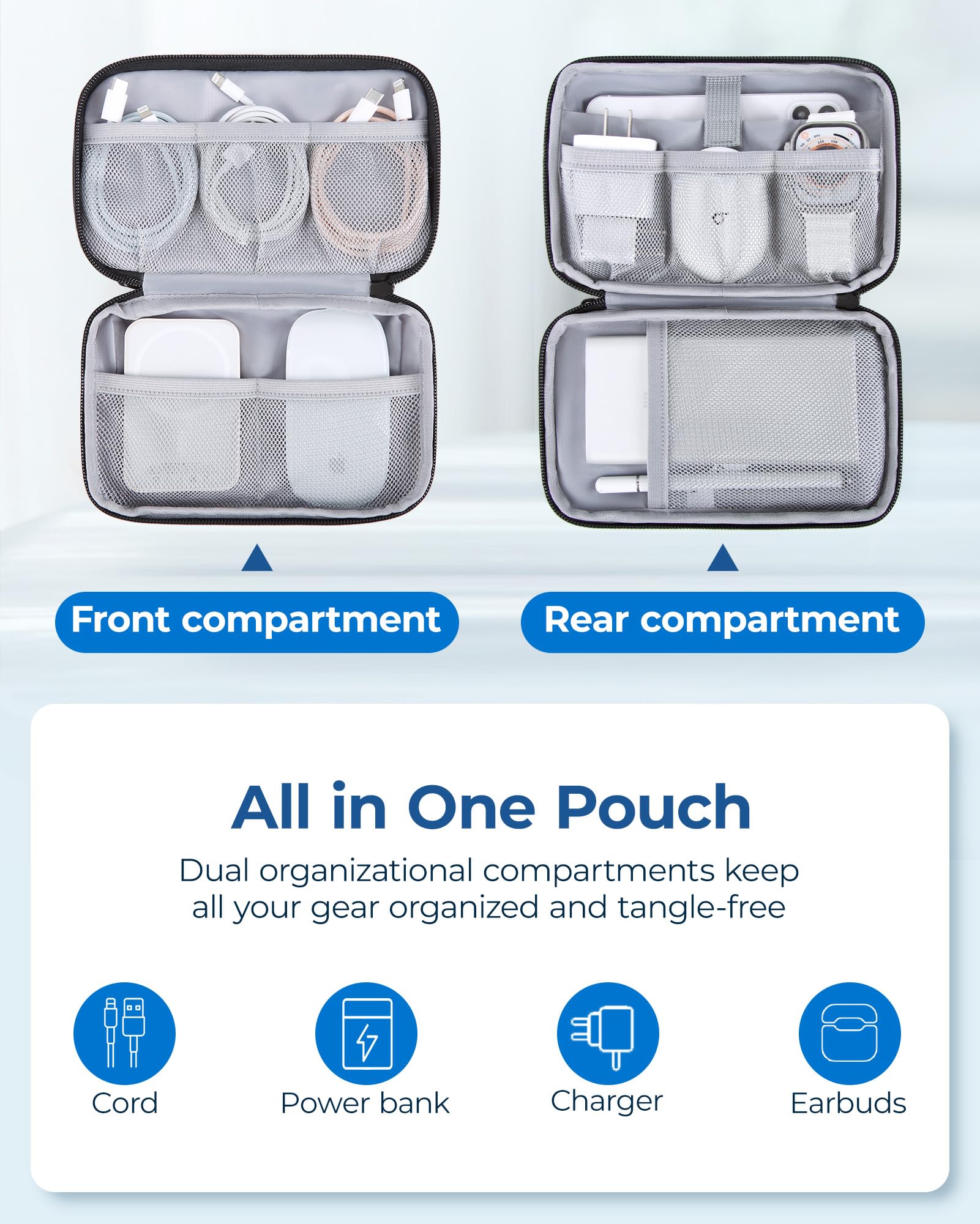 - Effortless Organization: Streamline your gadgets with this innovative travel tech organizer. Keep all your devices in one convenient place and bid farewell to tangled wires. With easy access to your travel accessories, you'll never have to rummage through your pack again. Whether you're on the go or in the office, this organizer is the perfect partner for your gadgets. Simplify your life and stay organized with this essential travel companion.