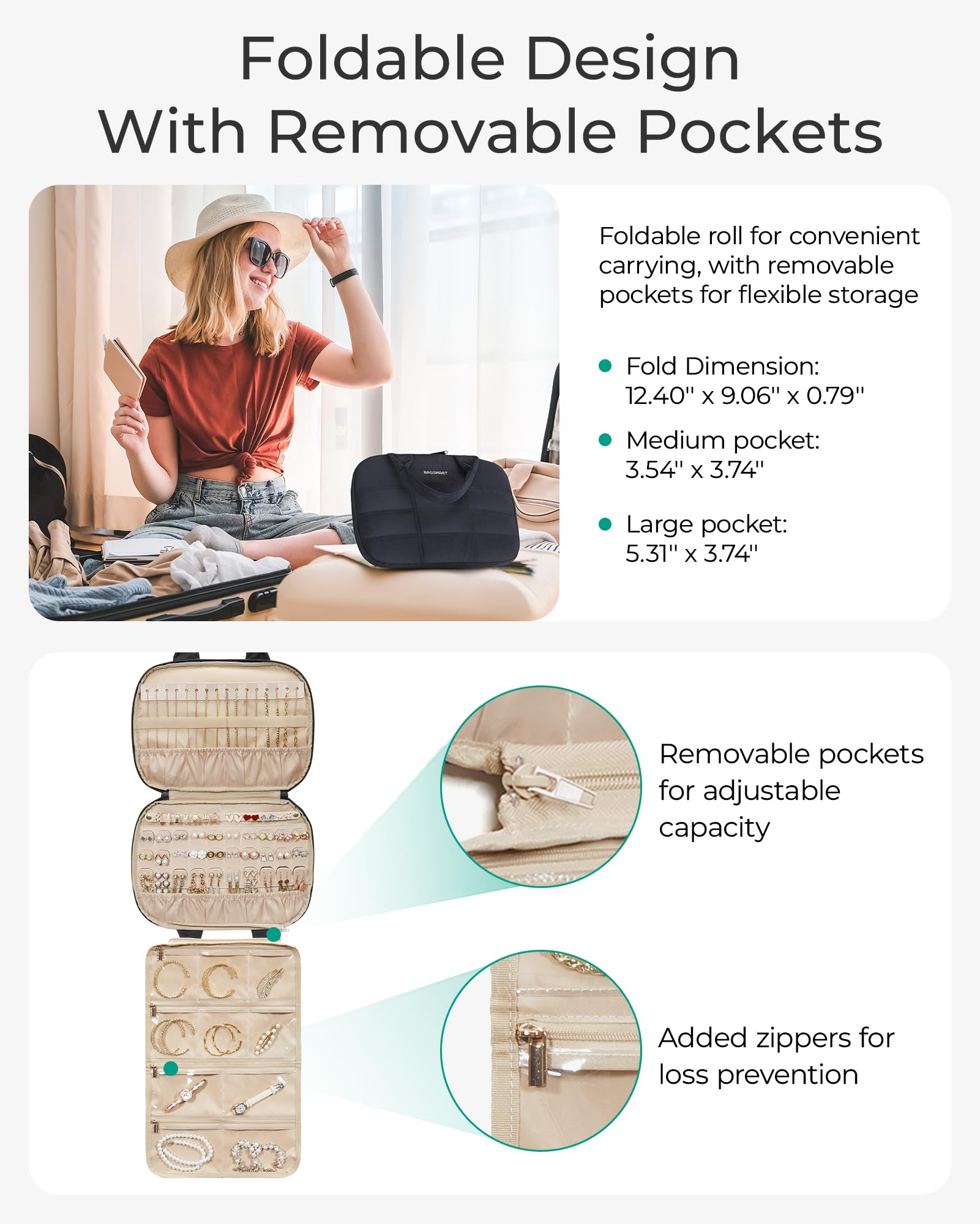 - Convenient Portability: This foldable jewelry organizer is lightweight and easy to carry. The zip closure keeps items secure and helps prevent jewelry from oxidizing. The removable PVC pockets offer flexible storage, which is perfect for keeping your jewelry organized while on the go
