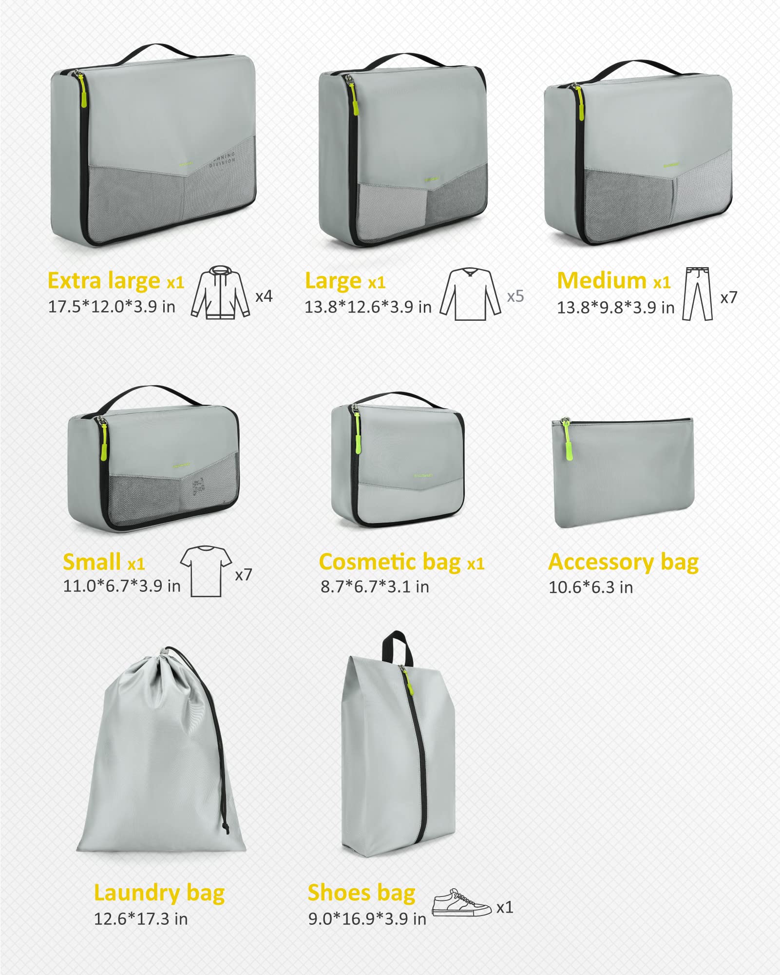 - PERFECT ORGANIZER: BAGSMART 8 set packing cubes ensure your clothes are neatly packed in bags without wrinkles. Whether you’re an overpacker or prefer to travel lightly, these travel cubes will help all types of travelers stay organized and maximize space in a suitcase. Perfectly fits 20", 24" and 28" luggage. Say goodbye to all travel worries!