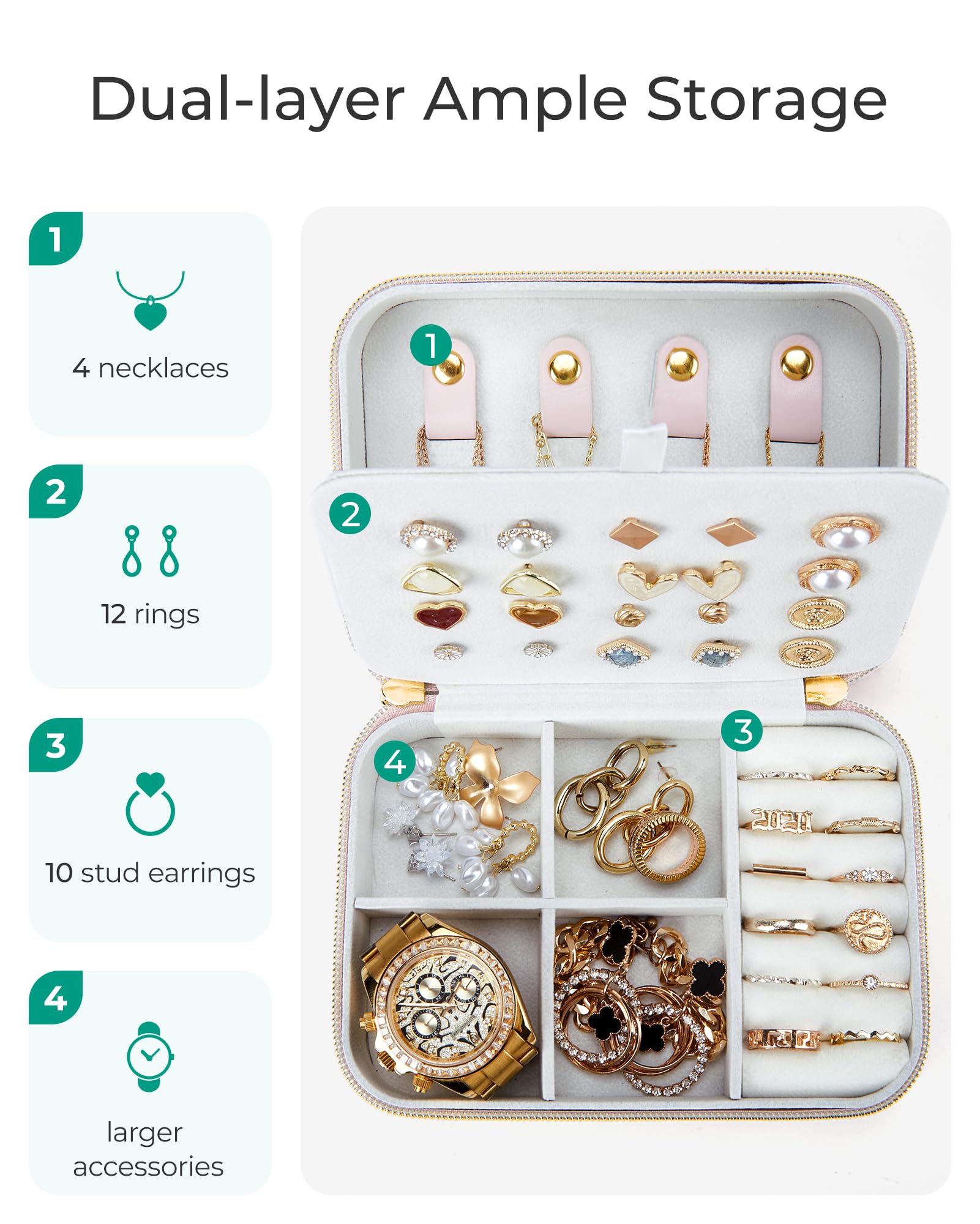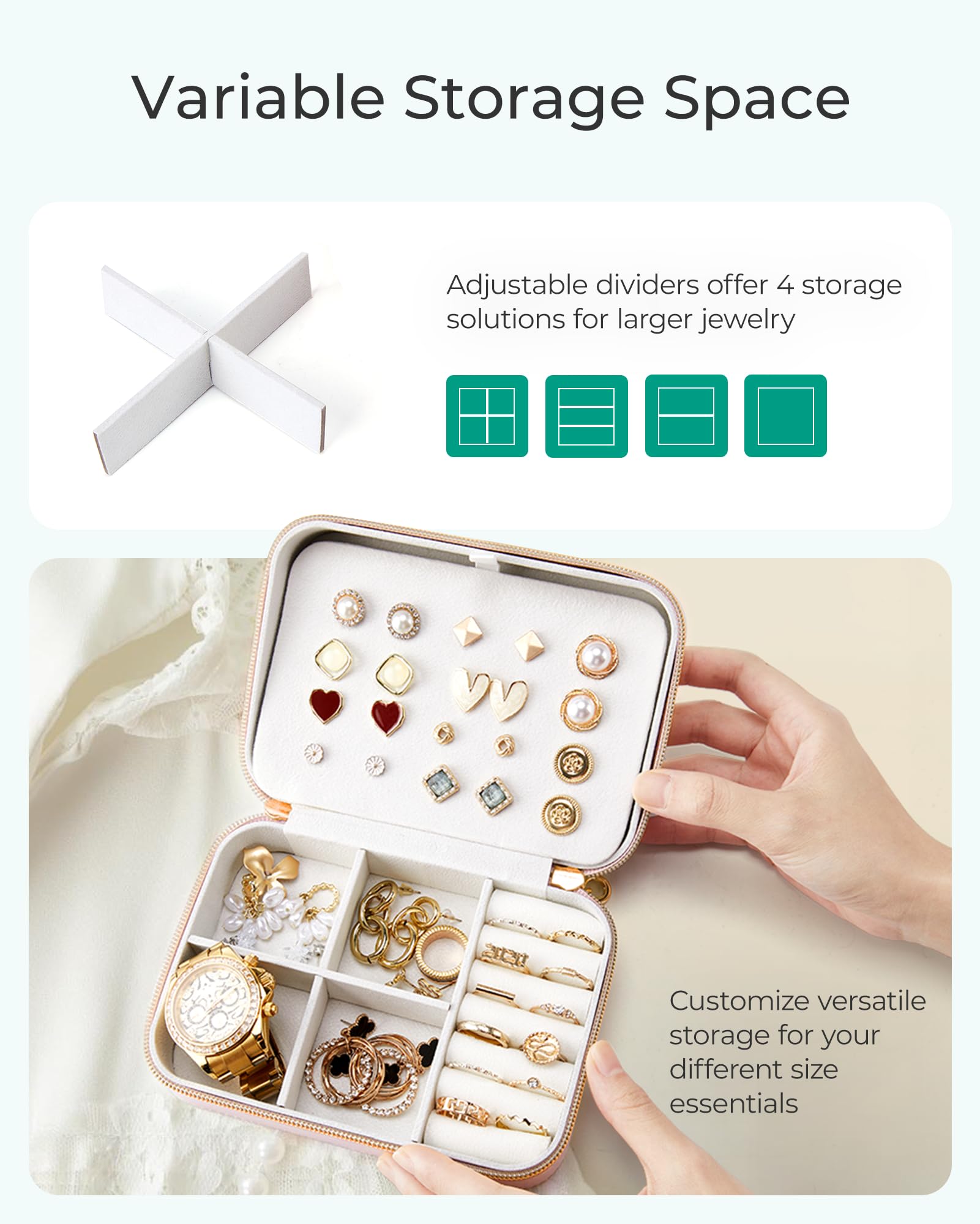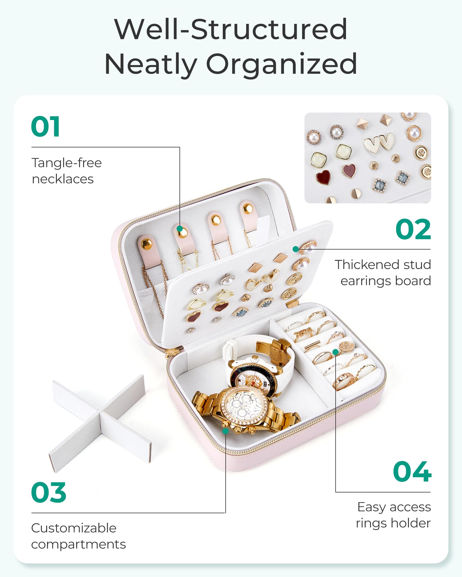 - Travel-Friendly and Convenient: Jewelry boxes & organizers Measuring 6.6" x 4.7" x 2.3", this compact yet spacious travel jewelry organizer slides easily into womens purse or suitcase. Jewelry boxes for women with travel-ready design offers convenience and protection, making small jewelry box an ideal choice for gifting to bridesmaids, or for birthdays, anniversaries, Mother’s Day, or Christmas.