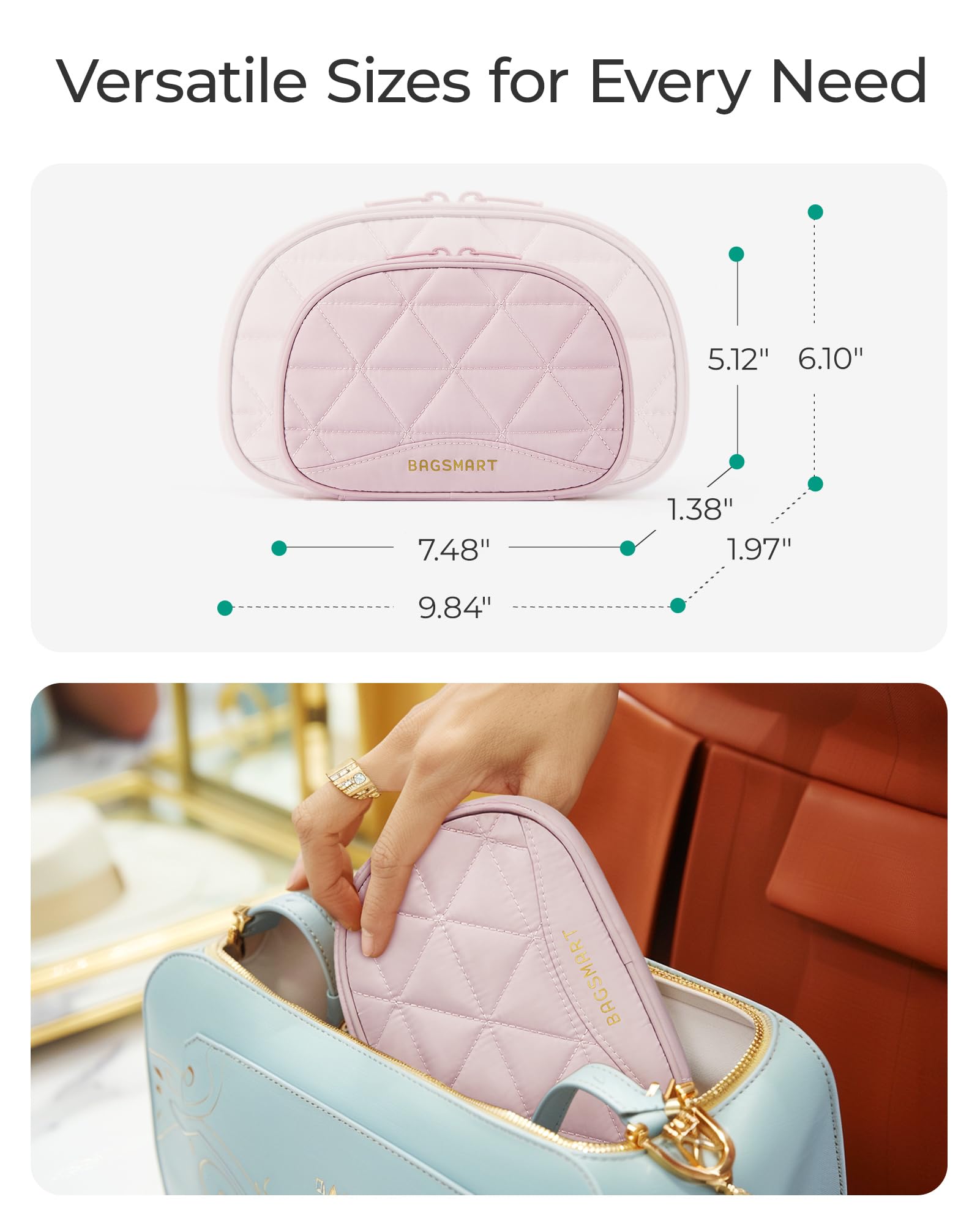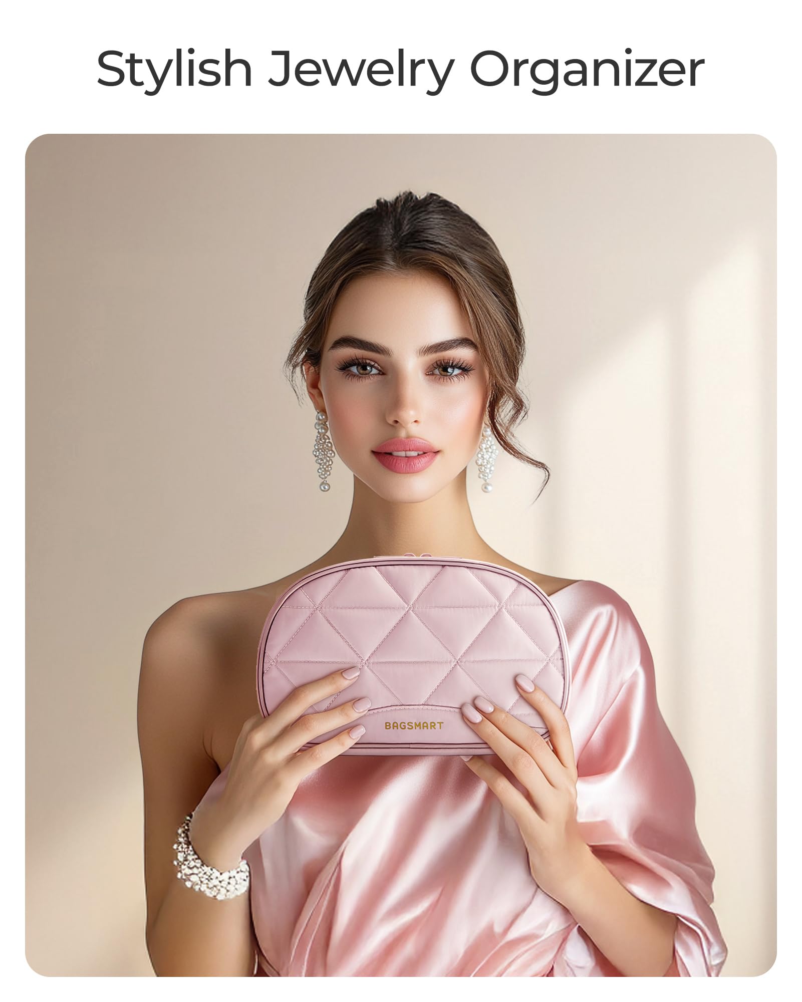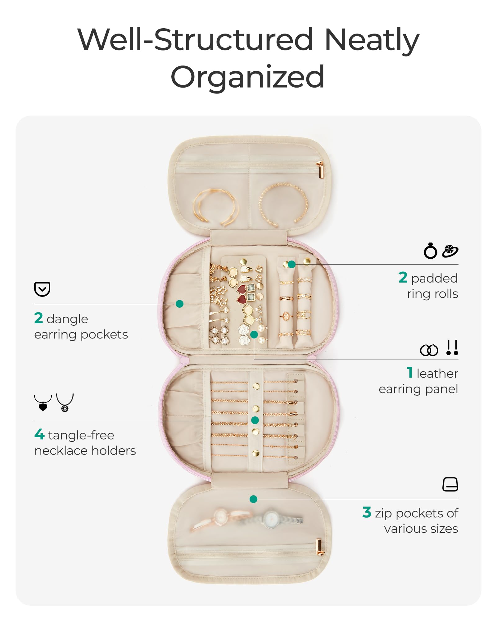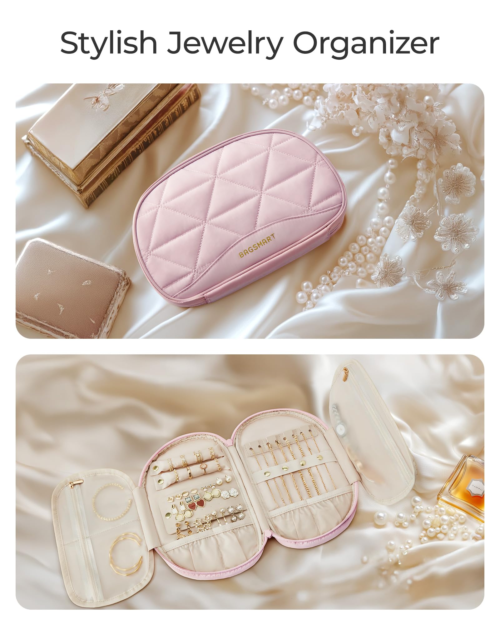 BAGSMART Travel Jewelry Case Jewelry Organizer Storage Roll Rings Necklaces Earrings Bracelets Brooches Watch Large Portable Light Pink