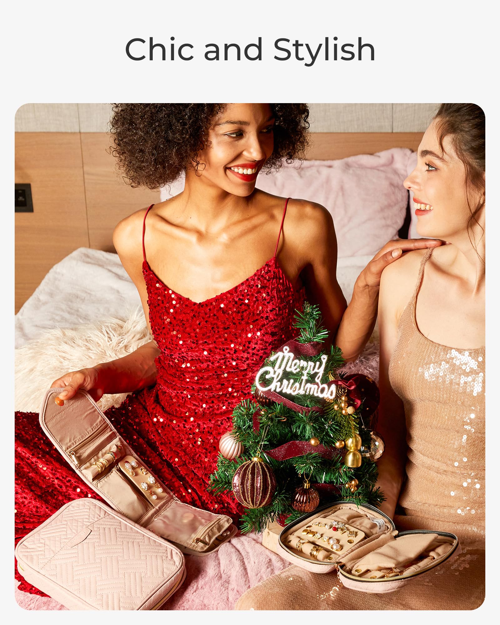 BAGSMART Travel Jewelry Organizer Case Foldable Jewelry Roll for Journey Rings, Necklaces, Earrings, Bracelets,Mini,Soft Pink