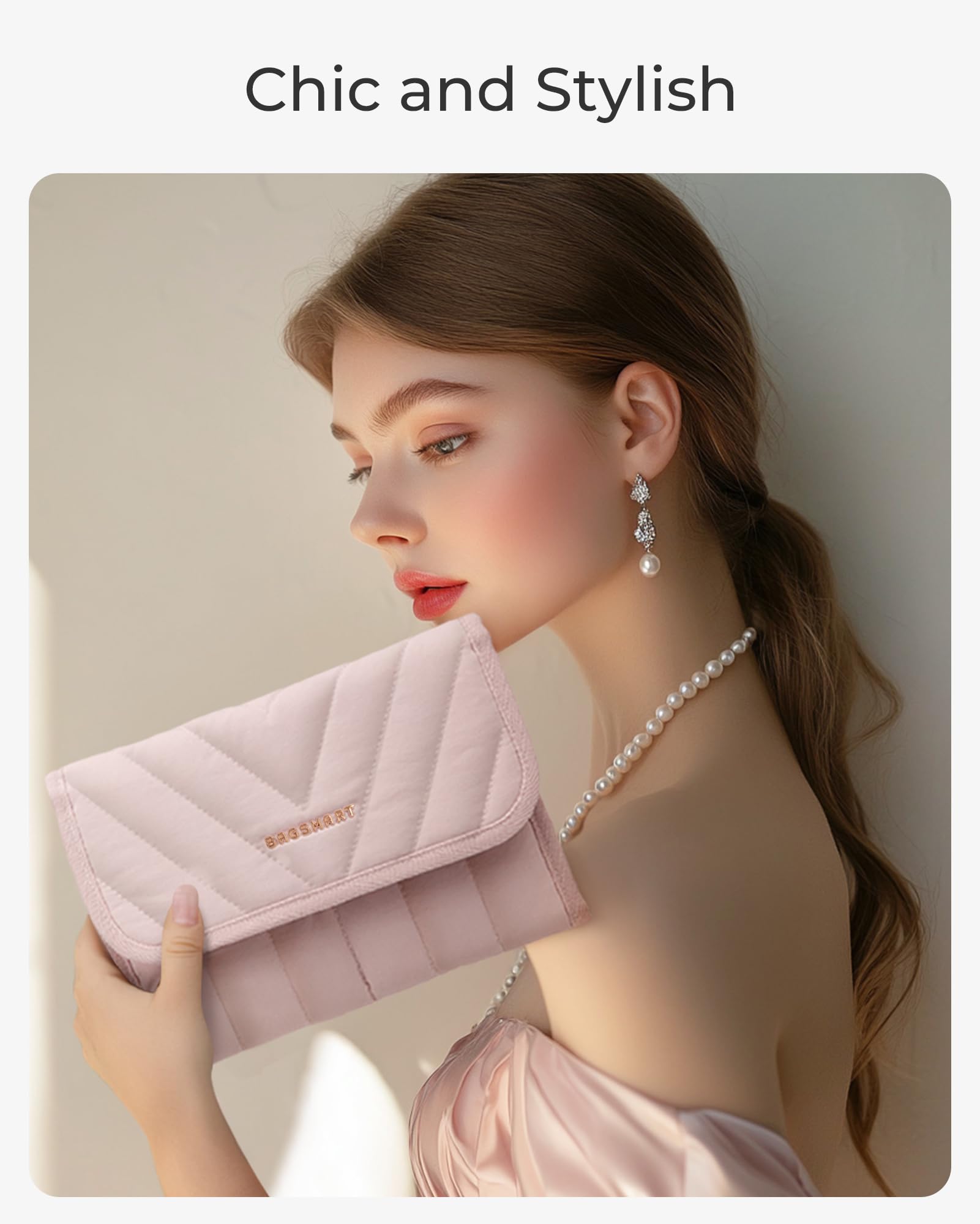 - Quality Craftsmanship:Constructed from premium, soft-touch fabric with an elegant stitched design, this jewelry roll combines style with functionality. The interior is lined with a robust material that provides extra protection for your jewelry, ensuring long-lasting use.